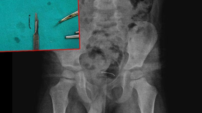 Güroymak'ta sürekli karın ağrısı şikayeti çeken 5 yaşındaki çocuk, ailesi tarafından çeşitli sağlık kuruluşlarına götürüldü. Sonuç alamayan aile, en son Tatvan Devlet Hastanesi'ne başvurdu. Burada çekilen röntgende, çocuğun mesane duvarında metal bir cisim olduğu belirlendi. 9 ay önce yutulan ve vücutta kalan 3 santimetrelik toplu iğnenin mesane duvarına yapıştığı tespit edilince ameliyata karar verildi.