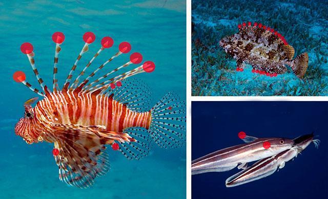 * Sokar Balıkları (Siganus rivulatus, Siganus luridus) – Yenilebilir bu türler Güneydoğu Akdeniz'de büyük sürüler halinde bulunur ve günümüzde yayılım alanı hem kuzey hem de batı yönünde genişlemektedir. Sokar balıklarının zehirli bölümleri 13 sırt, 7 anal, 4 göğüs yüzgeçlerindeki diken ışın ve batırdığı dikenlerin deri altında yayılmasını sağlayan zehir bezlerinden oluşur. Balıkçılar, bu balıkları avlarken ve temizlerken dikkatli olmalıdır. Dikkatli bir şekilde tutulduğunda ve temizlendiğinde, her iki türün eti de yenilebilir.
