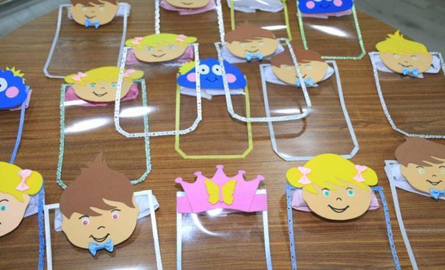 Amasya'da İlduş Hatun Mesleki ve Teknik Anadolu Lisesi öğretmenlerince koronavirüse karşı yeni doğan bebekler için üzerinde renkli resimlerin çizildiği yüz koruyucu siperlikler üretildi.