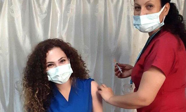 Sağlık Bakanı Fahrettin Koca, hemşire Şule Tınas'ın, radyoloji teknisyeni kızı Sıla Tınas'a Covid-19 aşısını yaparken çekilen fotoğrafını Twitter'dan paylaştı.