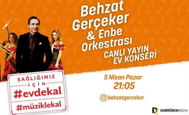 Sevilen şarkılarıyla Behzat Gerçeker ve ENBE Orkestrası, Demirören Medya’nın ‘#EvdeKal#MüzikleKal’ projesi kapsamında ev konseriyle canlı yayına katılıyor. “Evde kalın ama müziksiz kalmayın diyen” Gerçeker, verecekleri konserle moral olacaklarını söylüyor.