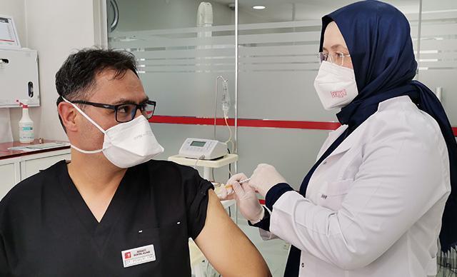 Ordu'da, Aybastı Toplum Sağlığı Merkezi’nde görev yapan hemşire Saliha Em, ameliyat yaptığı sırada diş hekimi eşi Hüseyin Em’e koronavirüs aşısı uyguladı. Sağlık Bakanı Fahrettin Koca'nın fotoğrafını sosyal medyadan paylaştığı Saliha hemşire, "Bakanımızın fotoğrafı paylaşmasından dolayı çok mutlu oldum, gurur duydum" dedi ve herkesi aşı olmaya davet etti.
