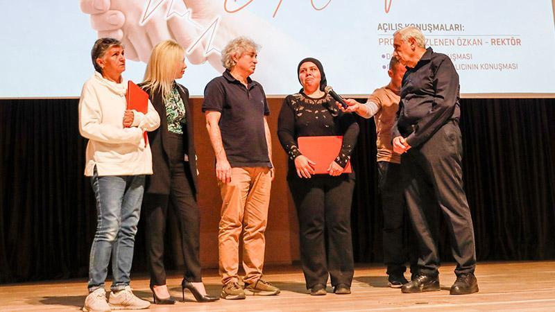 Konuşmaların ardından sahneye, organları bağışlanan kişilerin aileleri çağrılarak teşekkür plaketi verildi. Bu sırada duygu dolu anlar yaşandı. 43 yaşında iş kazası sonucu hayatını kaybeden ve organları bir başkasını umut olan Mimar Bora Dumlupınar'ın annesi Sultan Dumlupınar, uzun süre gözyaşı döktü. Dumlupınar'ı, Rektör Özkan sarılarak teselli etmeye çalıştı. Dumlupınar, "Oğlumu iş kazasında kaybettim. Geride 3 çocuğu kaldı. 6 organını bağışladık. Herkesi organ bağışına davet ediyorum" diye konuştu.