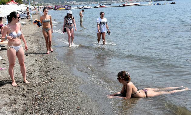Caddelere konulan elektronik termometrelerin 35 dereceyi gösterdiği Marmaris kent merkezinde, sıcaktan bunalanlar, sahillere akın etti. Şehir merkezi boyunca 11 kilometre uzanan mavi bayraklı plajları, sabah erken saatlerde dolduran turistlerden kimileri şemsiye altında dinlenmeyi tercih ederken, bazıları gün boyu denizin keyfini çıkardı. Rus ve İngiliz turistler, sere serpe uzanarak güneş altında bronzlaşmayı tercih etti. Sahildeki su sporları merkezleri de doldu. Ailece plaja gelen vatandaşlar ise şezlonglarda dinlenmeyi tercih etti. Çocuklar da köpekleriyle denize girerek oyunlar oynadı.