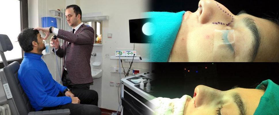 ERZURUM Mareşal Çakmak Devlet Hastanesi'nde görevli Kulak-Burun-Boğaz Cerrahisi Uzmanı Dr. Furkan Şengöz, hastalarına İtalya'da geliştirilen piezo tekniği ile burun estetiği operasyonu yapıyor. Devlet hastanesinde verilen bu hizmetten yararlanmak için Türkiye'nin dört bir yanından hastalar Erzurum'a akın ediyor.