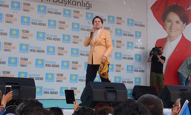 Terör örgütü FETÖ/PDY'ye yönelik eleştirilerle sözlerini sürdüren Akşener, "Öyle bir sistem kuracağım ki bir daha ordunun içine, polisin içine, eğitimin içine, yargının içine, ne FETÖ ne metö ne ketö giremeyecek. Yeniden sanayileşeceğiz. Yeniden fabrikalar açılacak. Eğer israfı kesersek, şeker fabrikalarının 1 yıllık zararının karşılığı, sarayın 13 günde harcadığı paraya eş. Günahtır be" diye konuştu. Bir vatandaşın kendisine seslenmesi üzerine sözlerini kesen Meral Akşener, partilinin bebeğini kucağına alarak öptü.