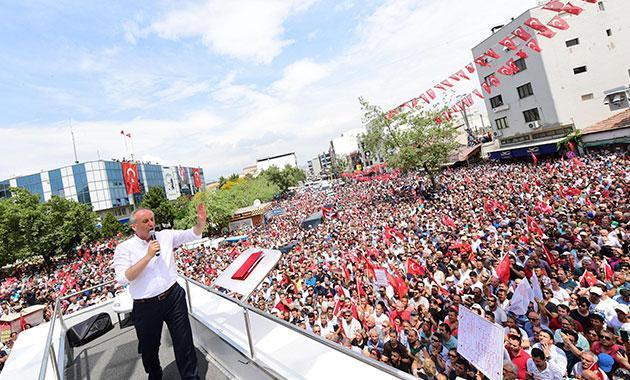 "Erdoğan bugün bana demiş ki 'Kemal Kılıçdaroğlu'nun karşısında çıktı, 4 kere kaybetti.' 2 kere kaybettim, onu düzelt. Sen 1989 yılında Beyoğlu Belediye Başkanı seçilebildin mi? Beyoğlu'na belediye başkanı olamadın ama bak cumhurbaşkanı oldun. 1991'de milletvekili olabildin mi? Demek ki milletvekili de olamadın ama cumhurbaşkanı oldun. Abdullah Gül genel başkan olamadı ama başbakan oldu. Binali Yıldırım, İzmir'e Büyükşehir Belediye Başkanı olamadı ama başbakan oldu. Demek ki siyasette bunlar olabiliyor. Ben de genel başkan olamadım ama cumhurbaşkanı olacağım. Bunda ne var? Bir de Sayın Genel Başkan bana 'Muharrem buraya gel' demiş. Yahu adam benden 15 yaş büyük, genel başkanımız, 15 yıldır birlikteyiz, 'Gel' demiş ne var bunda? Kılıçdaroğlu, cumhurbaşkanlığına aday olacak olan kardeşinin evinin bahçesine Genelkurmay Başkanı'nı helikopterle göndermez. Sen belediye başkanlarına 'Çekil bakim oradan' diyorsun, çekiliyor. Senin yola beraber çıktığın kimse şimdi yok yanında. Bülent Arınç yok, Abdullah Gül yok. Hepsi terk etti seni. Sen ona bak. Ben dedim ki 'Birinci köprüyü Demirel yaptı, ikinciyi Özal yaptı, üçüncü köprüyü Erdoğan yaptı 4. köprüyü İnce gelir, yapar' dedim. O da bana cevap vermiş 'Köprü yapmak senin haddine mi düştü' demiş. Demirden köprü yapmak kolay, basarsın parayı yaparsın. Ben gönül köprüsü kuruyorum senin bilmediğin şeyi yapıyorum."