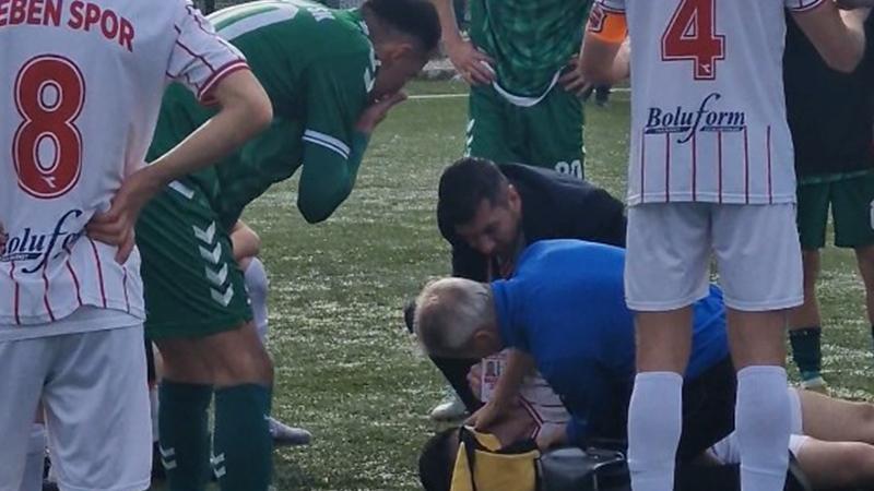 Bolu’da Celal Uslu 1’inci Amatör Lig maçında iki futbolcunun çarpışması sonucu Sebensporlu Orçun Taha bilincini kaybetti. Saha sağlık görevlisi Nahit Kalyoncu ile Saha Komiseri İsmail Hakkı Kaya oyuncuya ilk müdahaleyi hızlı bir şekilde gerçekleştirdi. Karşılaşma yaşanan olay sonrası kısa süreliğine dururken, tedavisi yapılan futbolcunun sağlık durumunun iyi olduğu öğrenildi.
