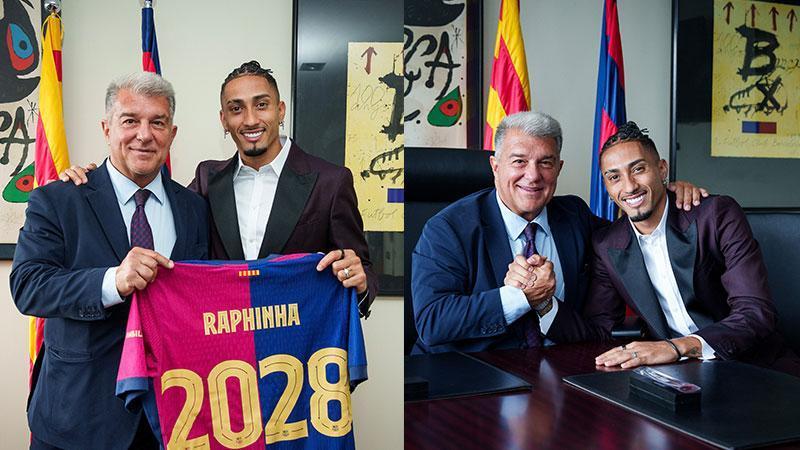 La Liga, İspanya Kral Kupası ve İspanya Süper Kupası’nda şampiyonluğa ulaşan Barcelona, bu sezon gösterdiği performansla yıldızlaşan 28 yaşında Brezilyalı kanat oyuncusu Raphinha’nın sözleşmesinin 2028 yılına kadar uzatıldığını duyurdu. Katalan deviyle tüm kulvarlarda 56 maça çıkarak 34 gol ve 25 asistlik katkı sağlayan Brezilyalı oyuncu kariyer sezonunu geçirirken, Ballon d'Or adayları arasında da yer alması bekleniyor.