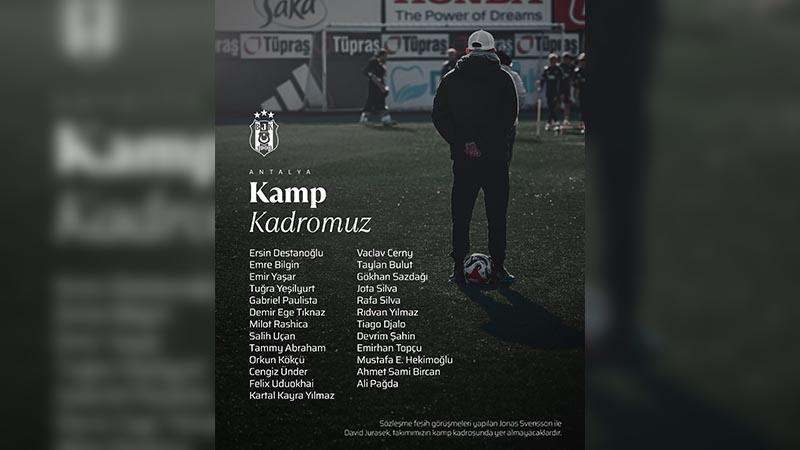 Antalya’da devre arası çalışmalarını sürdürecek siyah-beyazlılarda, sözleşme fesih görüşmeleri yapılan David Jurasek ve Jonas Svensson ile geçtiğimiz hafta futbol planlamasında yer almayacağı açıklanan Necip Uysal kamp kadrosuna dahil edilmedi.