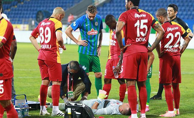 Çaykur Didi Stadyumu'nda oynanan mücadelenin 15'inci dakikasında Rizesporlu Skoda'nın vuruşunu kurtaran Muslera, rakibiyle çarpıştıktan sonra yerde kalarak sakatlık yaşadı. Yedek kulübesinde bulunan kaptan Selçuk İnan, hakemden izin isteyerek tribünden sahaya girip Muslera'nın yanına gelirken, tecrübeli kaleci için ambulans çağrıldı. Muslera, sahada yapılan ilk müdahalenin ardından da ambulansla hastaneye götürüldü.