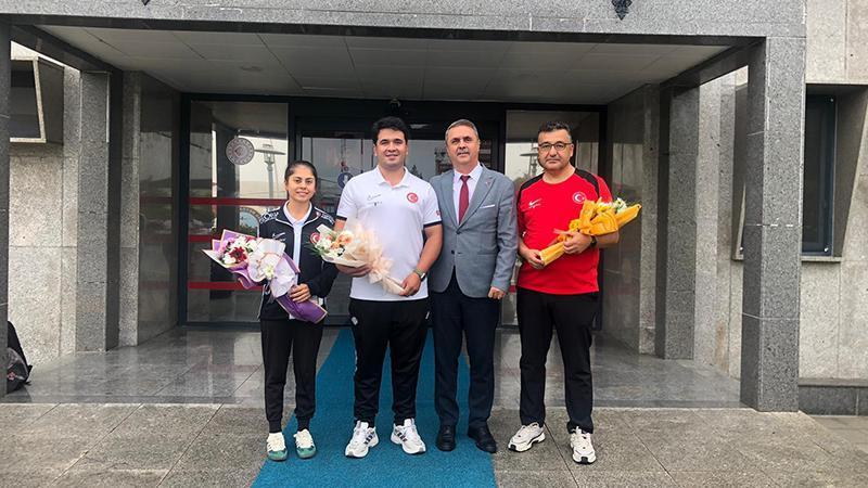 Dünya şampiyonu Emircan Haney çiçeklerle karşılandı