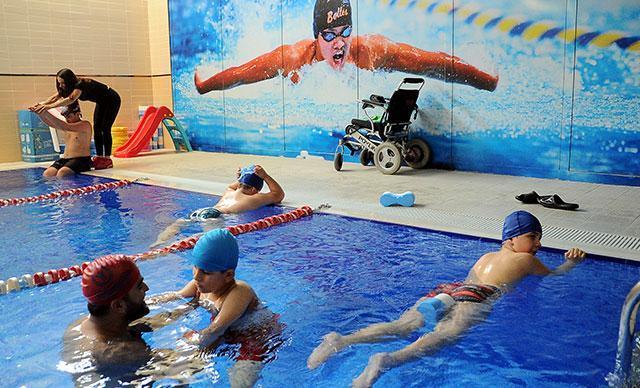 Engelli çocukların havuzda yüzme hayalini gerçekleştiriyorlar