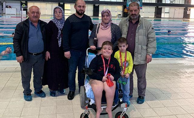 Bursa'da bedensel engelli çocuklara yüzme eğitimleri veren genç eğitmenler Arzu Taşoğlu (27) ile Çetin Arslan'ın (24) hayata geçirdikleri 'Suda Engelsiz Yaşam' projesi, ilk meyvesini verdi. Proje kapsamında eğitimler alan ve yüzmeye sıfırdan başlayan 10 yaşındaki Abdulkadir Köken, altın madalyanın sahibi oldu.