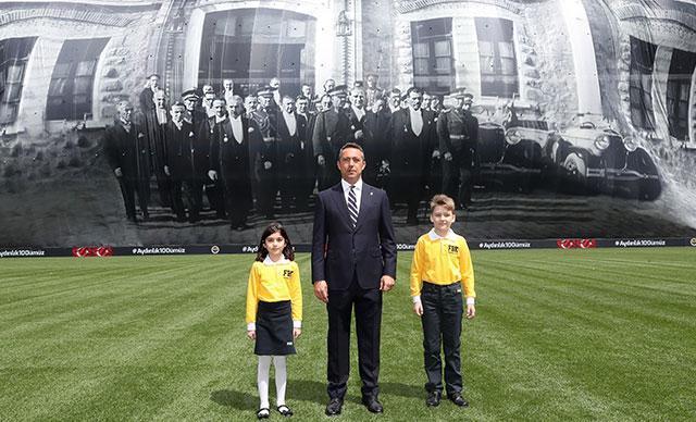 Başkan Ali Koç da yaptığı konuşmada; "Bugün, stadımıza bayramımızı kutlamak için geldik. Ve kalpleri bizimle olan milyonlar var yanımızda! Ne büyük onur, nasıl bir gurur... Bu fotoğraf; Atamızın önderliğinde, bağımsız Türk devletinin temel taşı, milli egemenliğimizin simgesi olan Meclisimizin açıldığı gün... Türkiye Cumhuriyeti'nin sonsuza kadar yaşaması ve çocuklarımıza eşsiz bir gelecek bırakmak için yaptı her şeyi. Minnettarız, bizim için, ülkemiz için yaptıklarına. Atam! Bizlere bıraktığın güzel ülkemizin geleceği, aydınlık yüzümüz olan çocuklarımıza; çocuklarımız bize emanet!" dedi.