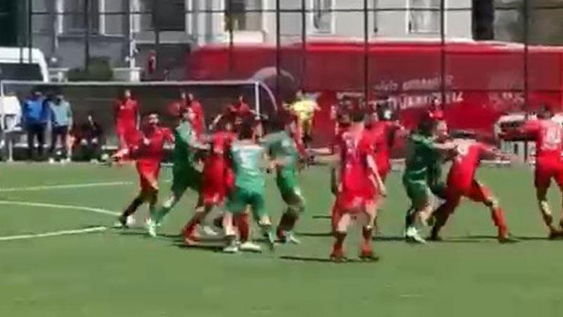 Futbol turnuvasında oyuncuların tekme tokat kavgası