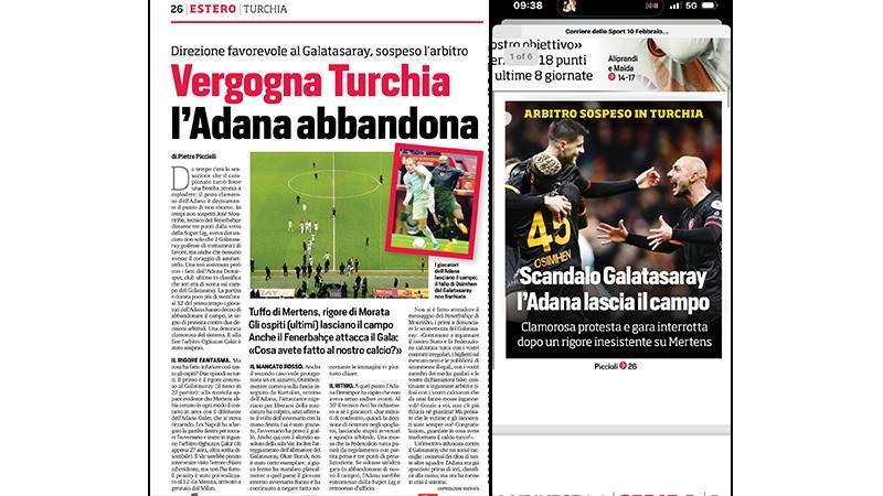 İtalya’nın ünlü spor gazetelerinden Corriere Dello Sport maçı gerek basılı gazeteden gerekse dijital mecralardan “Türkiye'de tam kaos: Galatasaray'a penaltı, Adana Demirspor'un tercihi sansasyonel!” başlığıyla verdi.