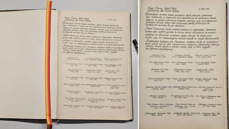 Atatürk’ün yanı sıra bazı devlet büyüklerinin de imzasının yer aldığı Galatasaray Lisesi anı defterine Galatasaray Topluluğu İşbirliği Kurulu’nun kararı ve ortak önerisiyle Galatasaray Kulübü Başkanı Dursun Aydın Özbek’e hitaben yazılan bir teşekkür yazısı hazırlandı.
