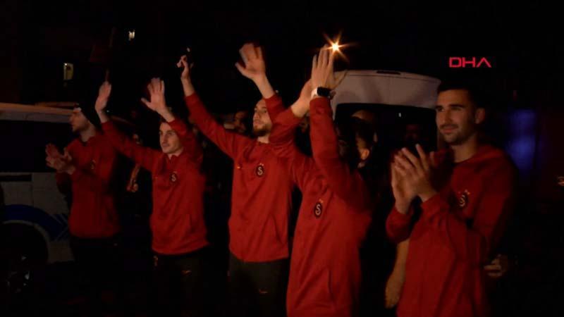 Galatasaraylı futbolcular, Florya Metin Oktay Tesisleri’nde derbi galibiyetini taraftarlarla kutladı.