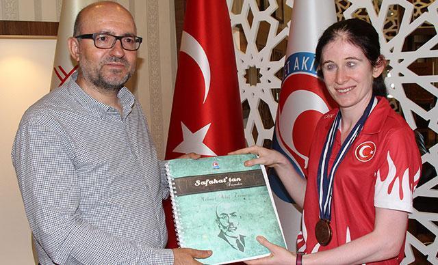 MAKÜ Beden Eğitimi ve Spor Yüksekokulu Beden Eğitimi Öğretmenliği 4'üncü sınıf öğrencisi Sevda Kılınç Çırakoğlu, Tunus'ta 28-30 Haziran tarihlerinde düzenlenen 2019 Dünya Para Atletizm Grand Prix 7'nci etabında 1500 metreyi 5 dakikanın altında koşan ve Türkiye rekoru kıran görme engelli ilk kadın sporcu oldu. Çırakoğlu, Tunus dönüşünde MAKÜ Rektörü Prof. Dr. Adem Korkmaz'ı ziyaret ederek desteğinden dolayı teşekkür etti. Rektör Korkmaz, MAKÜ'nün spora çok önem veren bir üniversite olduğunu belirterek, "Son iki yıldır sportif, teknik ve fiziki altyapı yatırımları yapıyoruz. Bu yatırımlar çok kısa zamanda meyvelerini verecek. Üniversitemizdeki başarılı genç sporcularımızla özel olarak ilgileniyor, çalışıyoruz. Bunun sonuçlarını da istikrarlı bir şekilde alıyoruz. Son yıllarda Mehmet Akif Ersoy Üniversitesi öğrencilerinin sporun her branşındaki farkı ortaya çıkıyor. Ben kendisini tebrik ediyorum, hem ülkemizin hem üniversitemizin gurur duyacağı bir sonuç aldığı için" dedi.
