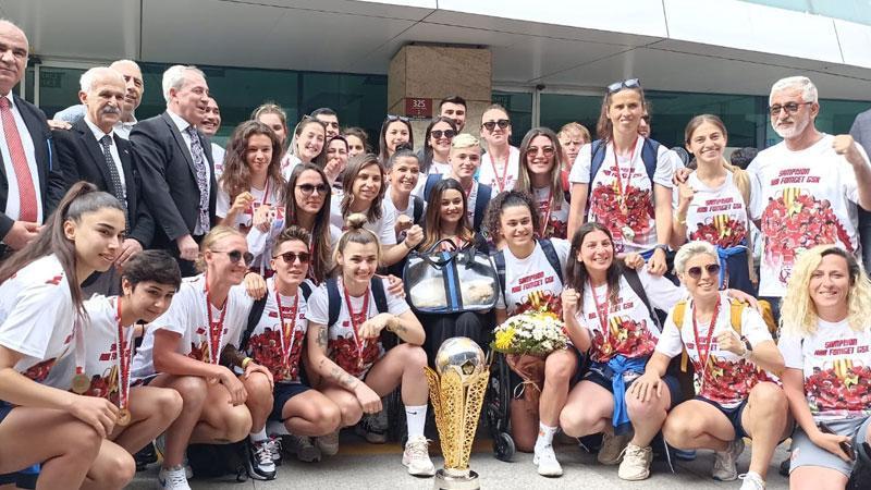 Kadın Futbol Süper Ligi şampiyonu Ankara Büyükşehir Belediyesi FOMGET'e coşkulu karşılama