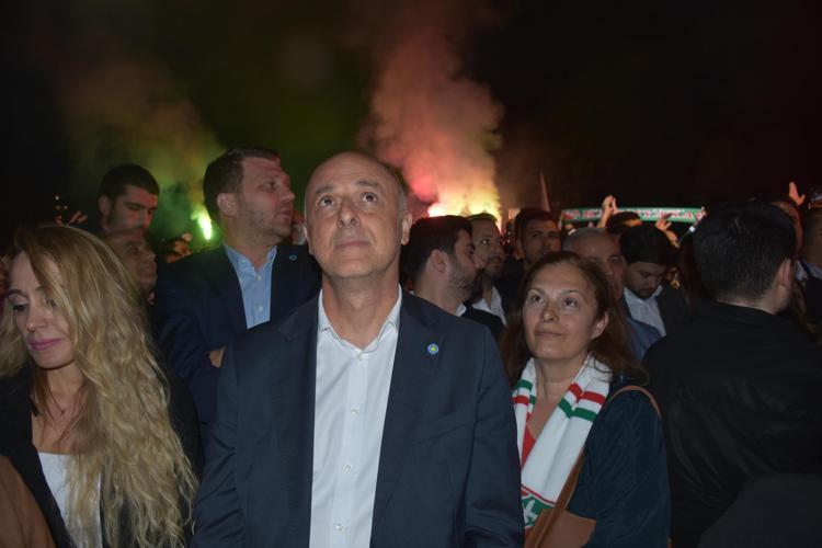 Başkan Ergüllü, mitingin bitiminde stat arazisini dolduran binlerce yeşil-kırmızılı taraftardan önce tüm ışıkları kapatmalarını, ardından da hep birlikte cep telefonlarının ışığını yakarak göğe tutmalarını istedi. Ergüllü, taraftarların telefonlarının ışıkları ve meşalelerle oluşturdukları görsel şölen üzerine, "Buranın karanlık değil her zaman böyle ışıl ışıl olması için buraya stadımızı istiyoruz" çağrısını yaptı.