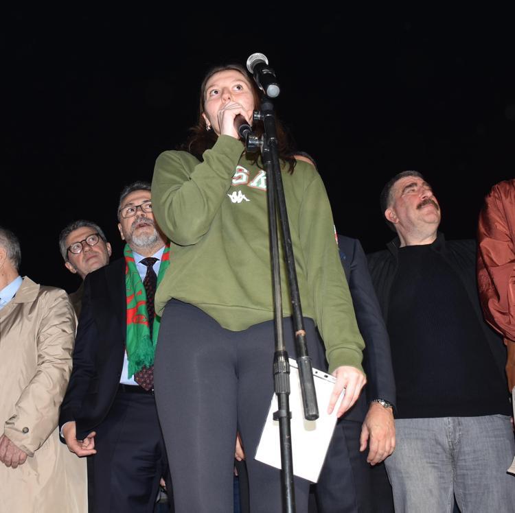 Mitingde Karşıyaka Spor Kulübü Başkanı İlker Ergüllü, 2'nci Başkan Mustafa Karabağlı, voleybol takımının altyapı patentli kaptanı Selen Naz Kıran, basketbol takımının altyapıdan yetişen oyuncusu Mert Celep, futbol takımı kaptanı Haydar Yılmaz, kulübün efsane eski kalecilerinden Ekrem Güçsav, Karşıyaka Danışma Kurulu Başkanı Hasan Denizkurdu ve Karşıyaka Taraftarlar Derneği Başkanı Okan Kırmacı konuşma yaparak yıllardır bekledikleri yeni statlarına artık kavuşmak istediklerini dile getirdi.