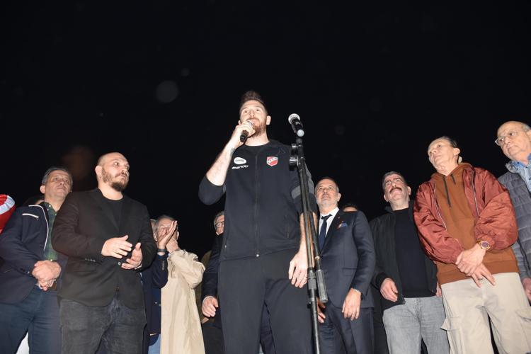 Kulüp Başkanı İlker Ergüllü, konuşmasında, "Değerli vakitlerini ayırıp buraya gelen herkese çok teşekkür ediyoruz. Taraftarımızın bu hafta başında yaktığı ateşe Karşıyaka Spor Kulübü yönetimi, divan kurulu ve danışma kurulu olarak eşlik ettik" dedi.