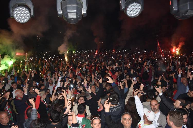 İzmir'in 112 yıllık en köklü temsilcisi Karşıyaka Spor Kulübü'nde yönetim, sporcular, camia ve binlerce taraftar, senelerdir yapımını bekledikleri yeni stat için Türkiye'nin ilk taraftar mitinginde buluştu. Karşıyaka camiası, 31 Mart Yerel Seçimleri öncesi hep bir ağızdan stat isteklerini dile getirdi. Taraftarın öncülük ettiği, 2015 yılında yeni stat projesi kapsamında yıkılan eski Karşıyaka İlçe Stadı'nın atıl kalan arazisinde düzenlenen mitinge yeşil-kırmızılı yönetim, camia, futbol takımının teknik direktörü Erkan Sözeri, A takım ve altyapıların sporcularının yanı sıra CHP İzmir Büyükşehir Belediye Başkan Adayı Cemil Tugay, İYİ Parti Adayı Ümit Özlale, AK Parti Karşıyaka Belediye Başkan Adayı İsmail Çiftçioğlu da kalabalığın arasında katılarak destek oldu.