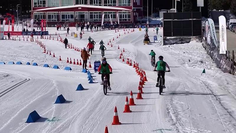 Kış Triatlonu’nda karla kaplı bölgede zorlu mücadele
