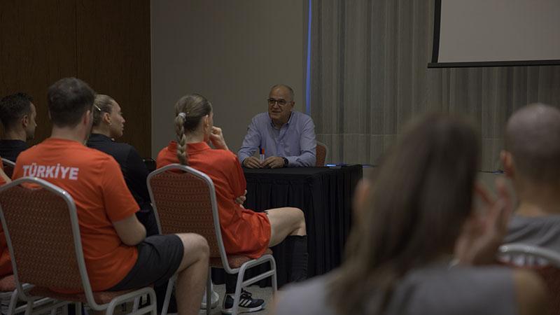 Kampın ikinci gününde Türkiye Voleybol Federasyonu (TVF) Başkanı Mehmet Akif Üstündağ, A Milli Kadın Voleybol Takımı oyuncuları ve teknik ekibi ile bir araya gelerek destek verdi.