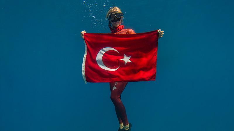 Dünya Serbest Dalış Rekortmeni Şahika Ercümen, sualtında Türk Bayrağı açarak 30 Ağustos Zafer Bayramı’nı kutladı.