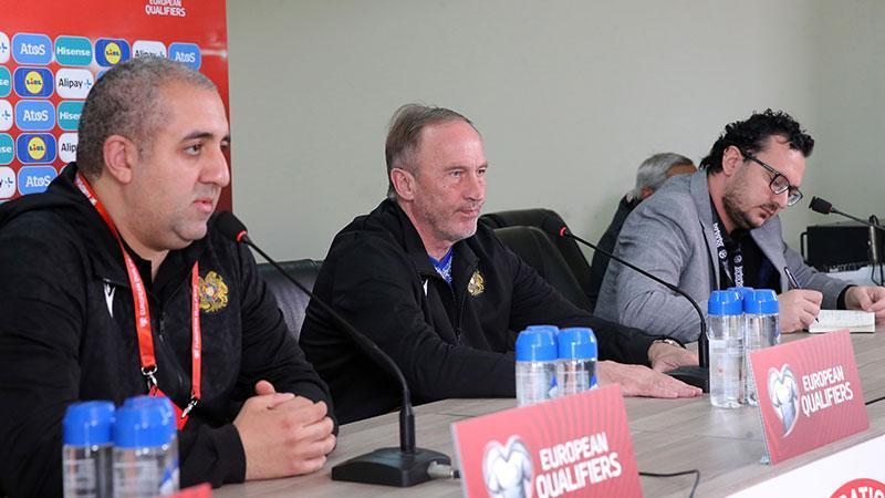 Ermenistan, Avrupa Futbol Şampiyonası (EURO 2024) Elemeleri D Grubu'ndaki ilk maçında yarın Türkiye’yi konuk edecek. Karşılaşma öncesi Ermenistan Teknik Direktörü Oleksandr Petrakov, müsabakanın oynanacağı Republican Stadı’nda düzenlenen basın toplantısında açıklamalarda bulundu.