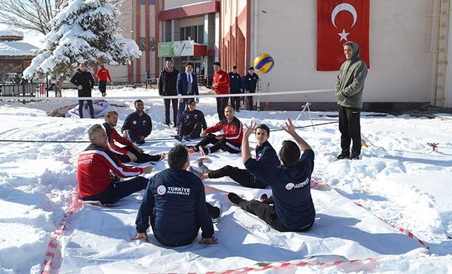 Aksaray'da Avrupa Şampiyonası için kamp yapan Paravoleybol Erkek Milli takımı, Sarıkamış Harekatı'nda şehit düşenler anısına kar üzerinde oturarak antrenmanını gerçekleştirdi.