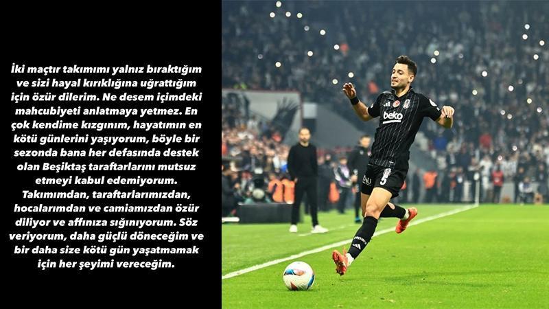 Kırmızı kart gördüğü Kasımpaşa maçının ardından sosyal medya hesabından bir açıklama yapan Tayyip Talha, taraftarlar ve camiadan özür diledi. Beşiktaş taraftarını mutsuz etmeyi kabullenemediğini belirten 25 yaşındaki stoper, “İki maçtır takımımı yalnız bıraktığım ve sizi hayal kırıklığına uğrattığım için özür dilerim. Ne desem içimdeki mahcubiyeti anlatmaya yetmez. En çok kendime kızgınım, hayatımın en kötü günlerini yaşıyorum, böyle bir sezonda bana her defasında destek olan Beşiktaş taraftarlarını mutsuz etmeyi kabul edemiyorum. Takımımdan, taraftarlarımızdan, hocalarımdan ve camiamızdan özür diliyor ve affınıza sığınıyorum. Söz veriyorum, daha güçlü döneceğim ve bir daha size kötü gün yaşatmamak için her şeyimi vereceğim” ifadelerini kullandı.