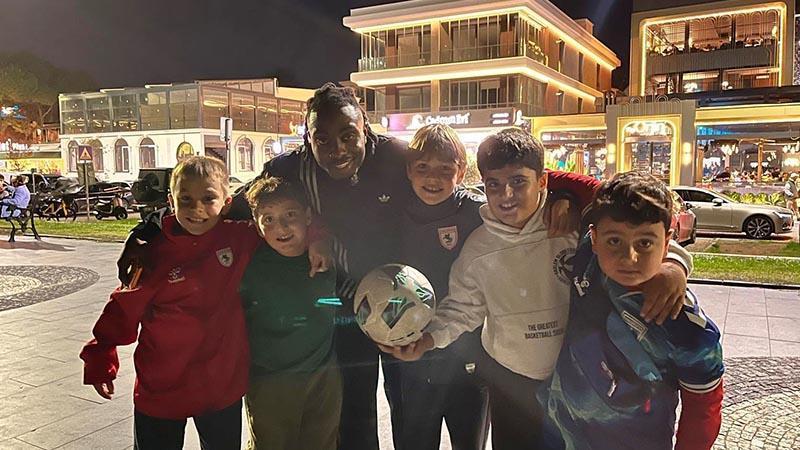 Samsunsporlu Makoumbou, çocuklarla kaldırımda futbol oynadı