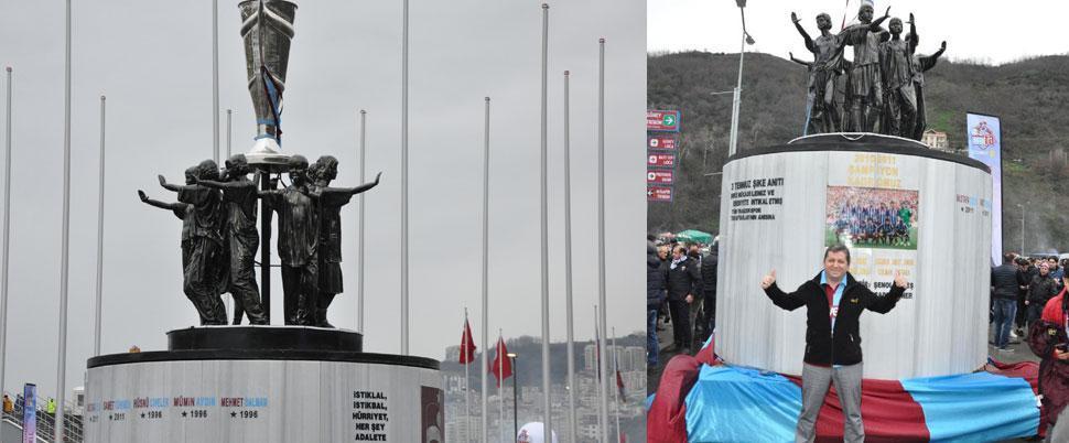 Bordo-mavili taraftarlar tarafından yaklaşık 95 bin lira maliyetle hazırlanan şike anıtı platformu, Trabzonspor-Fenerbahçe karşılaşması öncesinde Şenol Güneş Kompleksi’nin doğu tribünü giriş bölümüne yerleştirildi. Mermer yapı üzerine konuşlandırılan 3 metre çapında, 2 metre yüksekliğindeki şike anıtı, aynı zamanda alt tarafında bulunan tekerlekleri sayesinde taşınabilir özelliğe sahip. Şike anıtının ön bölümünde Trabzonspor logosu yer alırken, bulunduğu mermer kaidenin üzerinde ise 7 adet çocuk figürü heykelinin de yer aldığı görüldü. Trabzonsporlu taraftarlar da anıta yoğun ilgi gösterirken, anıt önünde bolca fotoğraf çekildi.