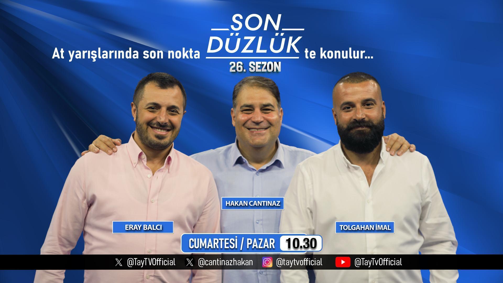 Tay TV Genel Yayın Yönetmeni Hakan Cantınaz moderatörlüğünde ünlü at yarışı yorumcuları Eray Balcı ve Tolgahan İmal’in analiz ve değerlendirmelerinin yer aldığı Son Düzlük, bu sezon da cumartesi ve pazar sabahlarının vazgeçilmezi olmaya devam edecek. Son Düzlük, 9 Ağustos 2025 Cumartesi günü 10.30-13.30 saatleri arasında 26’ncı sezonuyla Tay TV ekranlarında yerini alacak.