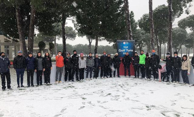 Belek turizm merkezinde gerçekleştirilen Türkiye Golf Turu'nun 1'inci Ayak mücadelesinin 3'üncü gününde kar yağışı nedeniyle müsabakalar oynanaadı. TGF tarafından müsabakaların yarın oynanmasına karar verildi. Turnuvada mücadele eden sporcular, sahanın karla kaplanmasının ardından alıştırma vuruşu yaptı. Toplam 10 ayaktan oluşan Türkiye Golf Turu'nun 1'inci Ayak mücadelesi yarın sona erecek. 2'nci Ayak mücadelesi 2-4 Şubat'ta gerçekleştirilecek.