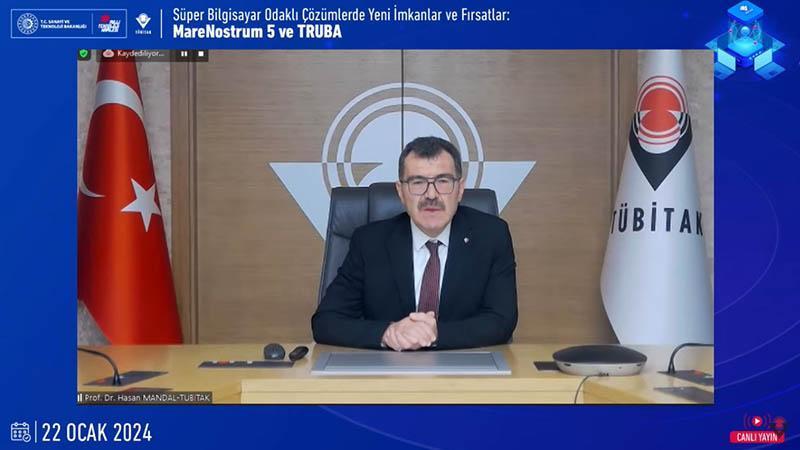 TÜBİTAK tarafından, Türkiye’nin de ortağı olduğu süper bilgisayar 'MareNostrum 5' ve TÜBİTAK Ulusal Akademik Ağ ve Bilgi Merkezi (ULAKBİM) tarafından işletilen Türk Ulusal Bilim e-Altyapısı (TRUBA süper bilgisayarı) hakkında çevrimiçi bilgilendirme toplantısı yapıldı. ‘Süper Bilgisayar Odaklı Çözümlerde Yeni İmkanlar ve Fırsatlar: MareNostrum 5 ve TRUBA’ başlığıyla gerçekleştirilen toplantıda konuşan TÜBİTAK Başkanı Hasan Mandal, Türkiye’nin ilk uzay yolcusu Alper Gezeravcı’nın uzay yolculuğuna değindi. Gezeravcı’nın Uluslararası Uzay İstasyonu’nda kalacağı 14 gün boyunca 13 farklı bilimsel deneye imza atacağını bildiren Mandal, bu deneylerin geleceğin sorunlarına çözüm üretme noktasında önemli bir yere sahip olduğunu dile getirdi.