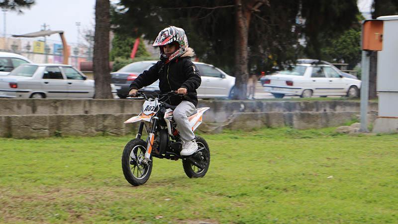 İlkadım ilçesinde motosiklet bakım servisi işleten Mustafa Demircan (36), hafta sonları iş yerine gelip motosikletlerle ilgilenen oğlu Yusuf Eymen Demircan'a binmesi için benzinli küçük bir motosiklet aldı. Yavuz Selim İlkokulu 4’üncü sınıf öğrencisi oğlu Yusuf Eymen'e motosiklet kullanmasını öğreten Mustafa Demircan, ilk olarak motosikleti evlerinin bahçesinde ve parklarda, daha sonra da trafiğe kapalı yollarda kullandırmaya başladı. Motosiklet sürmeyi babasından öğrendiğini ifade eden Yusuf Eymen Demircan, “Babam büyük motorlar sürdüğü için hevesim oldu. Motor sürmeyi babam bana öğretti. Büyüyünce yarışlara katılmak istiyorum. Böyle güzel şeye babamın sayesinde karşılaştım. Bu şekilde kat kat büyümeye doğru gitmeye çalışıyorum. Motorcu olmak, motor sürmek, pistlere ve yarışlara katılmak istiyorum” ifadelerini kullandı. Hayalinin oğlunu motosiklet sporcusu olarak yetiştirmek olduğunu belirten Mustafa Demircan, “1998 yılından bu yana motosikletlerle çalışıyoruz. Benim hep hayalimde bir oğlum olduğu zaman bu şekilde yetiştirmeyi, eğitmeyi, elimden geldiğince üst klasmanlara çıkartmaya çalışıyorum. Bu şekilde başladık ve bu şekilde devam etmeye çalışıyoruz. Bir senedir bu kadar yol katedebildik. Bundan sonrasını da Allah nasip ederse daha güzel şeyler yapmaya çalışacağız” diye konuştu. Oğlunun motosikleti, trafiğe kapalı alanlarda kullandığını ifade eden Demircan, “Bu motoru kapalı alanlarda, genellikle evimizin bahçesinde, gittiğimiz park alanlarında, gözümüzün önünde olduğu yerde, trafik olmadığı, tehlike katmayacağımız yerlerde bir şekilde elimizden geldiğince çocuğa imkan sağlamaya çalışıyoruz. İleriye dönük hedefimiz, oğlumuzu pist alanlarında ve yarışlarda görmek istiyoruz. Yusuf Eymen, şu an 4’üncü sınıfa gidiyor. Okuldan sonra, özellikle dersleri bittikten sonra ona hediye olarak motor sürdürüyoruz. Genellikle hafta sonları yani cumartesi ve pazar günleri 2-3 saat aralıklarla motosikletin üstünde ona eğitim vermeye çalışıyorum” dedi.