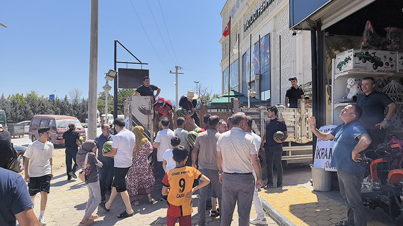 05:39Kapadokya’da yeni yıl hazırlıkları tamamlandıİnegöl-Alanyurt yolu üzerinde faaliyet gösteren mağaza yetkilileri, müşterilerine 12 ton ücretsiz karpuz dağıttı. Bir kamyon karpuzun ücretsiz dağıtılacağını duyanlar, mağazanın önüne akın etti. Kamyon kasasındaki karpuzlar 20 dakika içinde tükendi.