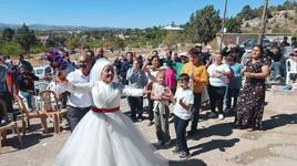 01:05Sadaka kutusunu çalan şüpheli yakalandı; o anlar kameradaDenizciler Mahallesi Çokoluk Yaylası’nda yaşayan Orhan Takmet ile Halide Takmet, 40 yıl önce kaçarak evlendi. Çiftin geçen sürede 4 çocukları ile 9 torunları oldu. Eşinin gelinlik giyme hayalini bilen Orhan Takmet, Dereköy Muhtarı Gürel Bolluk ve arkadaşlarının desteğiyle hayallerini gerçekleştirmek için düğün hazırlığını başladı. 4 çocuk annesi Halide Takmet düğün öncesinde bindallı giyerek kına gecesi yaptı. Kına gecesinde çift ilk danslarını etti, ardından da davetlilerle oynadı. Kına gecesinin sabahında düğün için gelinliğini giyen Halide Takmet kırmızı kuşağı ağabeyi tarafından bağlandı. Daha sonra çift ve davetliler davul zurna eşliğinde oyunlar oynadı. Kazanlarla yemeklerin pişirilip davetlilere ikram edildiği düğün pasta kesilmesinin ardından gelin çiçek fırlatılmasıyla tamamlandı.