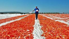 07:29Malatya Memleket Günleri, Maltepe’de kapılarını ziyaretçilerine açtıTürkiye'de sanayi tipi domates üretiminde 2'nci sırada yer alan, kurutulmuş domatesin de önemli merkezlerinden Manisa'nın Saruhanlı ve Turgutlu ilçelerinde hasat edilen ürünler, kurutulmak için tarlalara serilmeye başlandı. Tarlada işçilerin topladığı domatesler, makineyle güneşe seriliyor. Tuzlama işleminin ardından 1 hafta boyunca kurumaya bırakılan domatesler, daha sonra tesislere getirilerek işleniyor. İhracatçı firmalara kilogramı 35 ile 40 TL arasında verilen kurutulmuş domatesler, ABD başta olmak üzere İngiltere, İtalya, Almanya ve Rusya'ya gönderiliyor. Bu yıl kurutulmuş domateste 15 bin tonluk ihracat hedefleniyor.