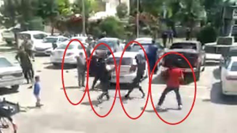 Diyarbakır'ın Bismil ilçesinde, dün husumetli iki aile arasında, duruÅŸma sonrası çıkan, 1'i asker 5 kiÅŸinin yaralandığı, 20 şüphelinin gözaltına alındığı kavganın cep telefonu kamerası görüntüleri ortaya çıktı. Görüntülerde, bir kiÅŸi husumetlisinin vurduÄŸu sopa darbesiyle yere düşerken, bir anda 5 kiÅŸinin sopalı ve bıçaklı saldırısına uÄŸruyor. O sırada bir asker de tarafları ayırmaya çalışırken, taraflardan birinin elindeki bıçakla elinden yaralanıyor. Kavga devam ederken, polisin havaya ateÅŸ etmesiyle taraflar ayrılıyor.Â