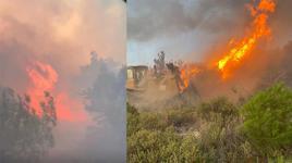 Havanın kararmasıyla birlikte havadan müdahale sona ererken, ekiplerin çalışmaları devam ediyor.