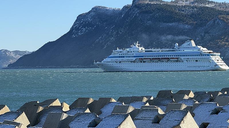 Bartın'ın Amasra ilçesine gelen 'Astoria Grande' isimli kruvaziyer, kuvvetli fırtına nedeniyle 5 kez deneme yapmasına rağmen limana yanaşamadı.