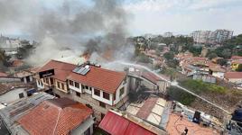 01:13Ağaca çarpan otomobildeki 14 yaşındaki Abdurrahman öldüMuratpaşa ilçesine bağlı tarihi Kaleiçi semtinde Selçuk Mahallesi Uzun Çarşı Sokak'ta saat 12.00 sıralarında yangın çıktı. Alevler biri otel, 3 iş yerini sardı. İhbar üzerine bölgeye çok sayıda itfaiye ekibi yönlendirildi. Gökyüzünü dumanların kapladığı yangına itfaiye ekipleri müdahale ediyor. Ekipler, tarihi semtteki yangının çevredeki diğer binalara sıçramaması için yoğun çalışma yürütüyor.