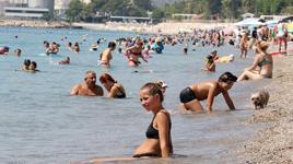 Turizm kenti Antalya'da dün hava sıcaklığının 46,1 derece ölçülmesiyle son 95 yılın temmuz ayı sıcaklık rekoru kırıldı. Meteoroloji 4. Bölge Müdürlüğü'nün verilerine göre; bugün de kent merkezinde hava sıcaklığı öğle saatlerinde 45 dereceyi aşarken, deniz suyu sıcaklığı 31, nem oranı yüzde 17 seviyelerine ulaştı. Kent merkezinde bulunan bazı termometreler, 48 dereceyi gösterdi. Sıcaktan bunalanlar, sabah erken saatlerde sahillere akın etti.
