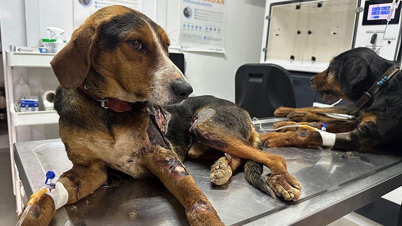 Köpeklerin tedavilerinin devam ettiğini kaydeden Mert Güçlü, "Acil serum ve ağrı kesici antibiyotik tedavilerine başlandı. Aradan geçen birkaç günden sonra her ikisi de operasyona alındı. Operasyonları başarılı şekilde geçti. Bu tedavi aylar sürecek. Onların yeniden koşabilmesi, yeniden mutlu olabilmesi için elimizden geleni yapacağız. Bu eylemi yapan şahıs şu an tutuklu, cezaevinde" diye konuştu.